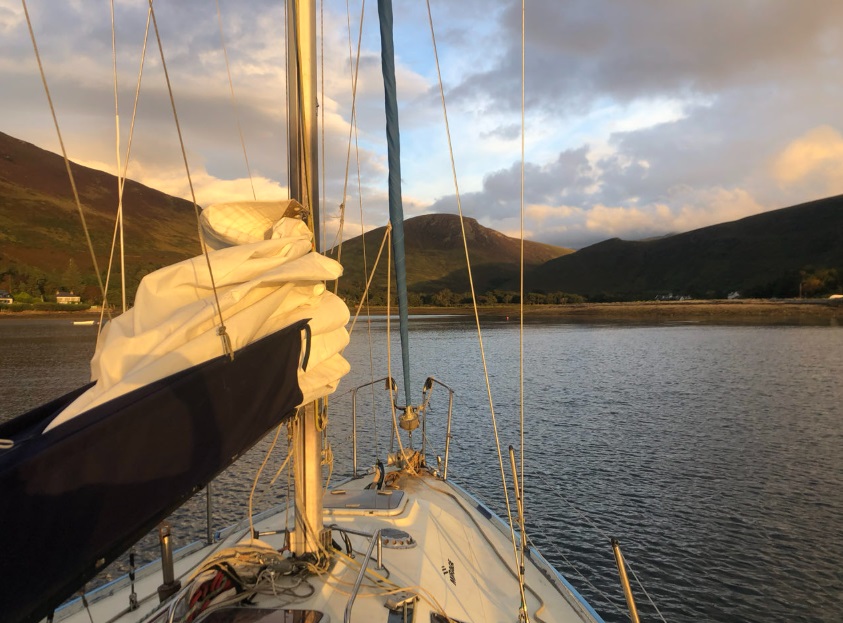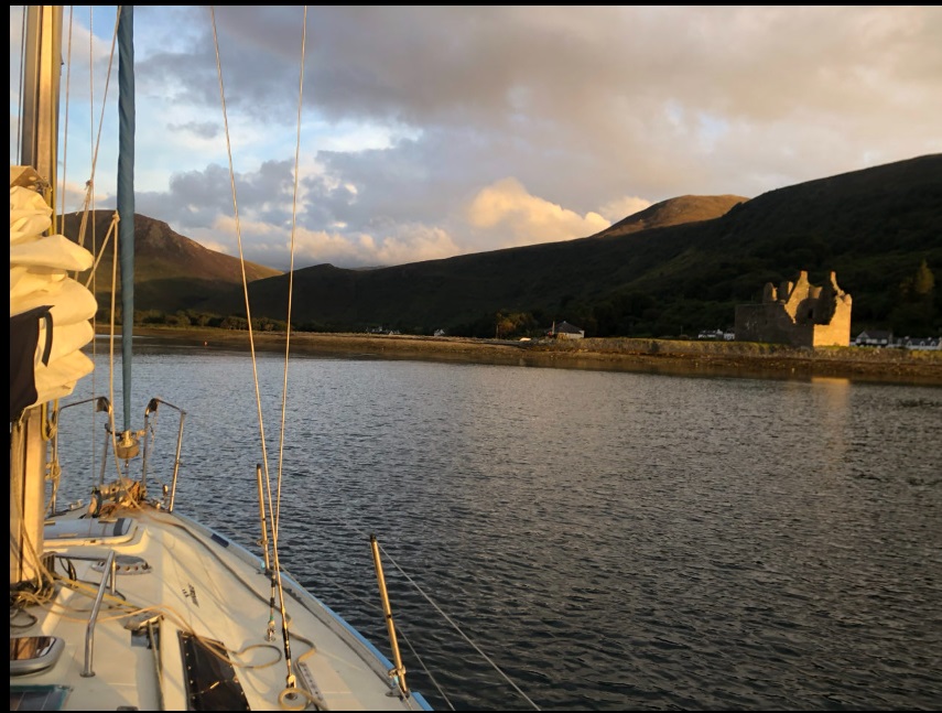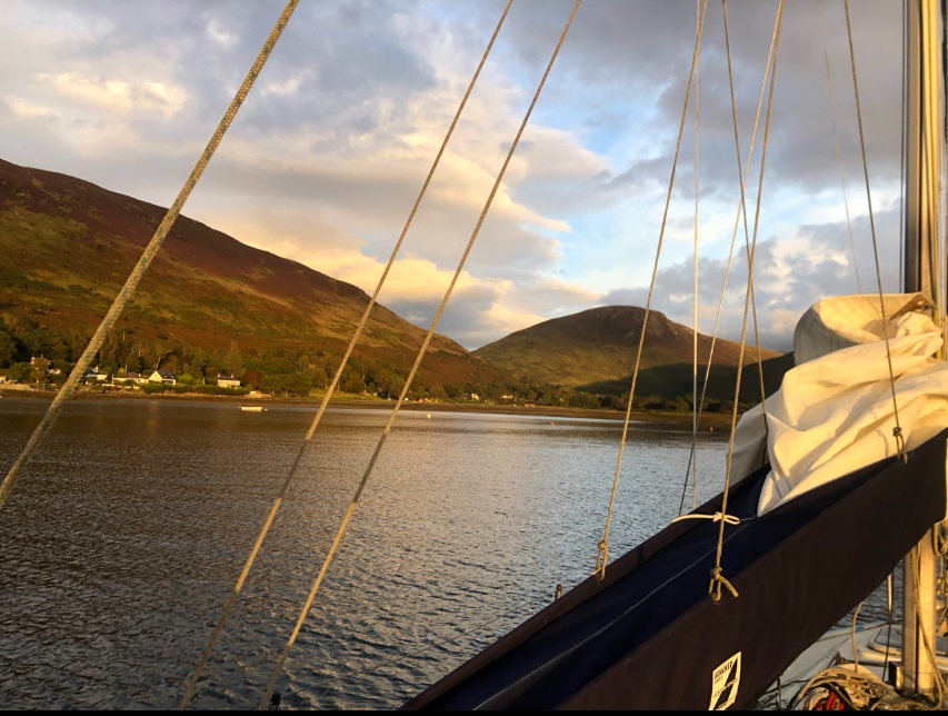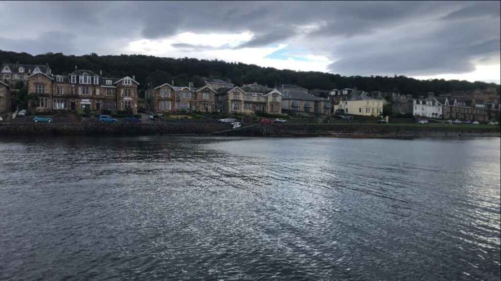I’m currently sailing in awe-inspiring scenery. The weather has been favourable, allowing for a broad reach across the head of the Isle of Arran, followed by two tacks—one to starboard and then one to port—into Rothesay Bay. There are many beautifully solid stone houses along the seafront, built by successful Glaswegians during the heyday of the world’s first industrial revolution.