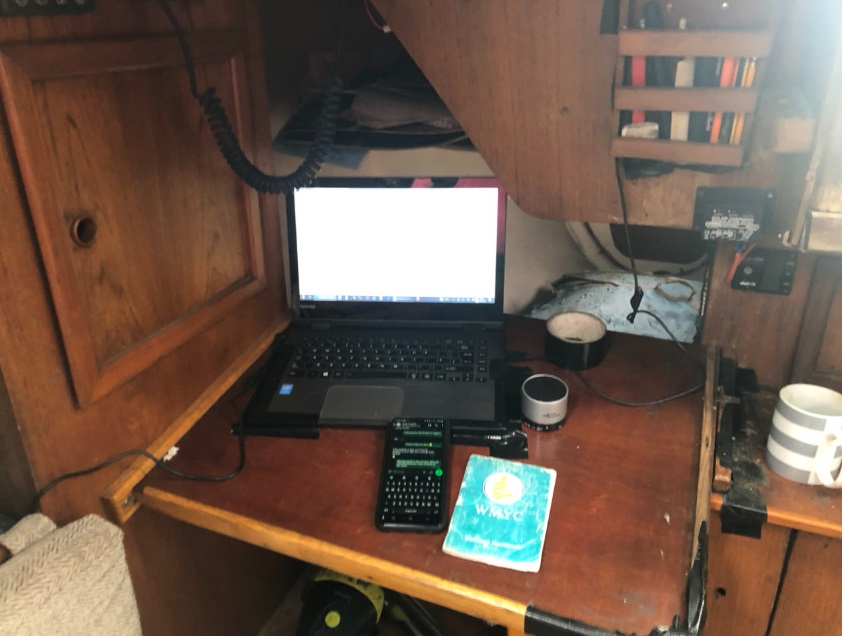 There are three chartplotters on board. The first is a Windows laptop that runs a raster plotter with all the Admiralty charts for Great Britain. The second is a recent Android smartphone that features modern vector charts covering the Irish Sea and the west coast of Scotland. Out of sight is an older Garmin plotter from 2012. All three chartplotters provide accurate positioning within 10 meters. Ironically, the software and processors used in space are from an older generation than all of my equipment.