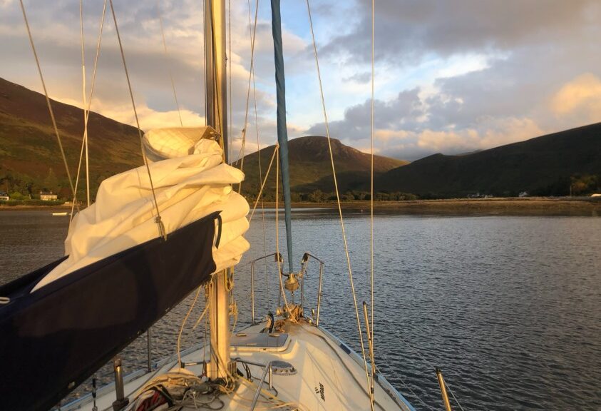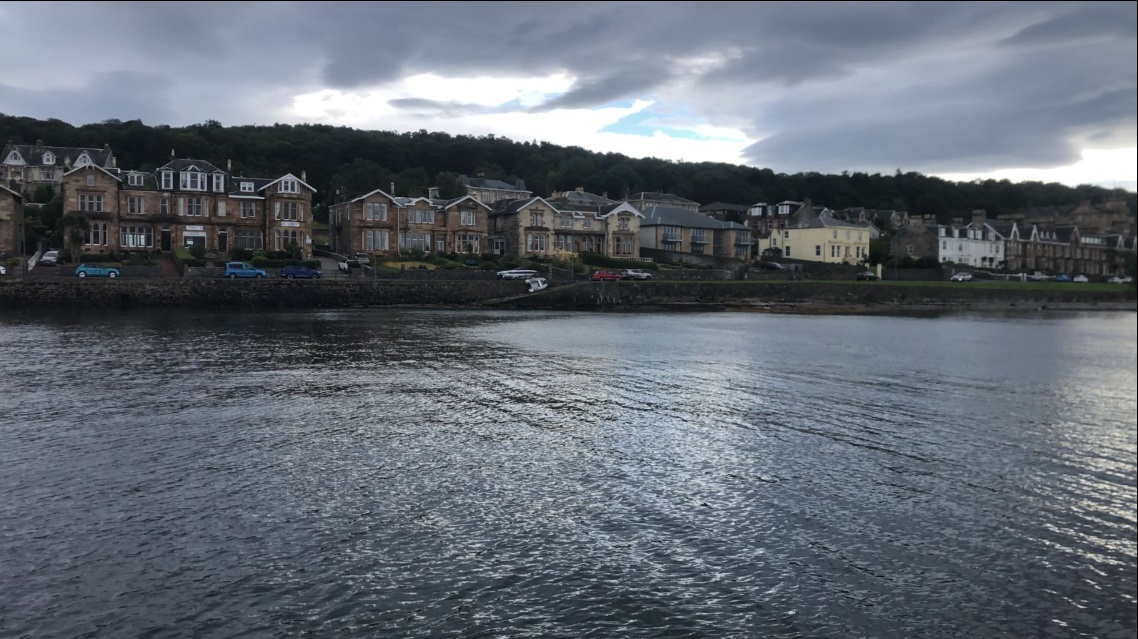 I’m currently sailing in awe-inspiring scenery. The weather has been favourable, allowing for a broad reach across the head of the Isle of Arran, followed by two tacks—one to starboard and then one to port—into Rothesay Bay. There are many beautifully solid stone houses along the seafront, built by successful Glaswegians during the heyday of the world’s first industrial revolution.